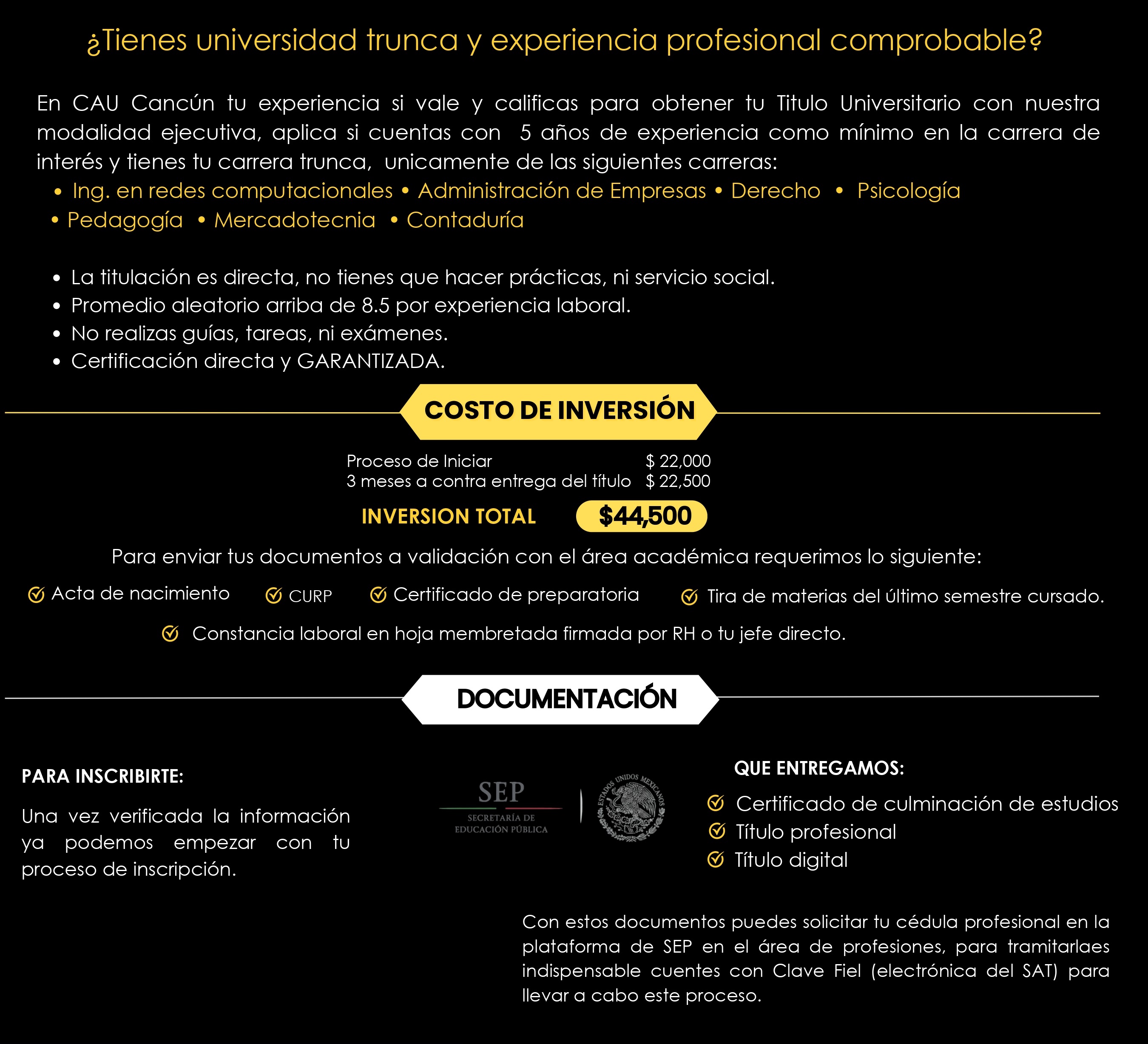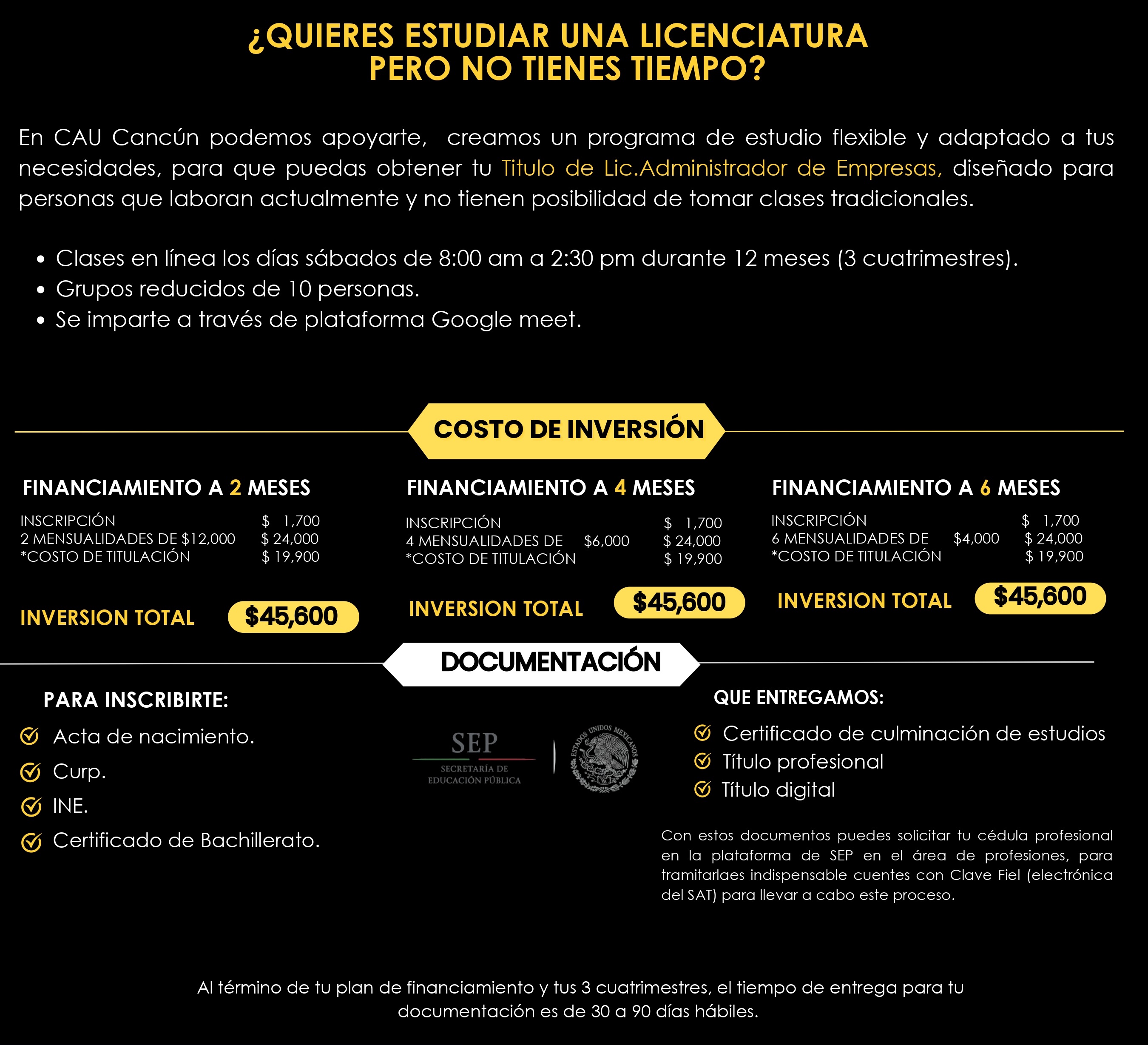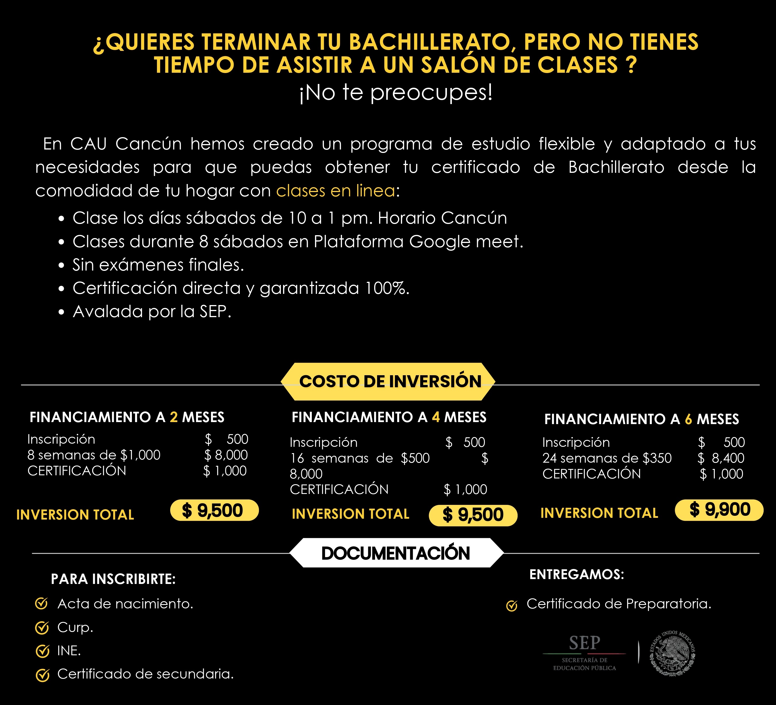 En CAU - Cancún hemos creado programas de estudio flexibles y adaptados a tus necesidades para ayudarte a obtener tu certificado o título desde la comodidad de tu hogar, nos enfocamos en brindarte una educación de calidad y en ayudarte a alcanzar tus metas académicas y profesionales.